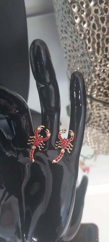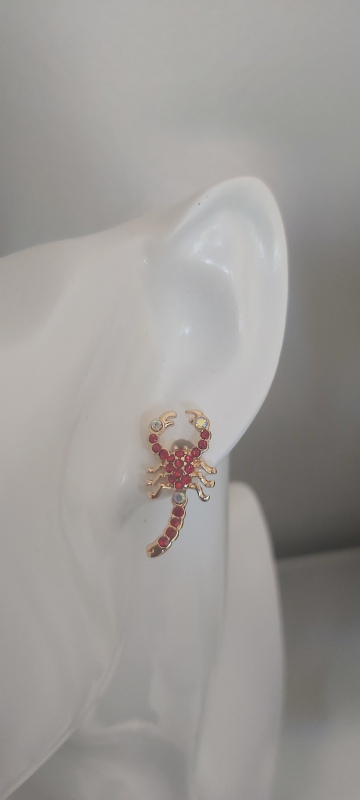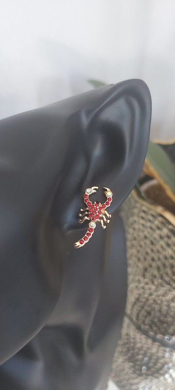 These unique designed, scorpion detailed, red gemstone, 14K gold alloy earrings is bound to turn heads